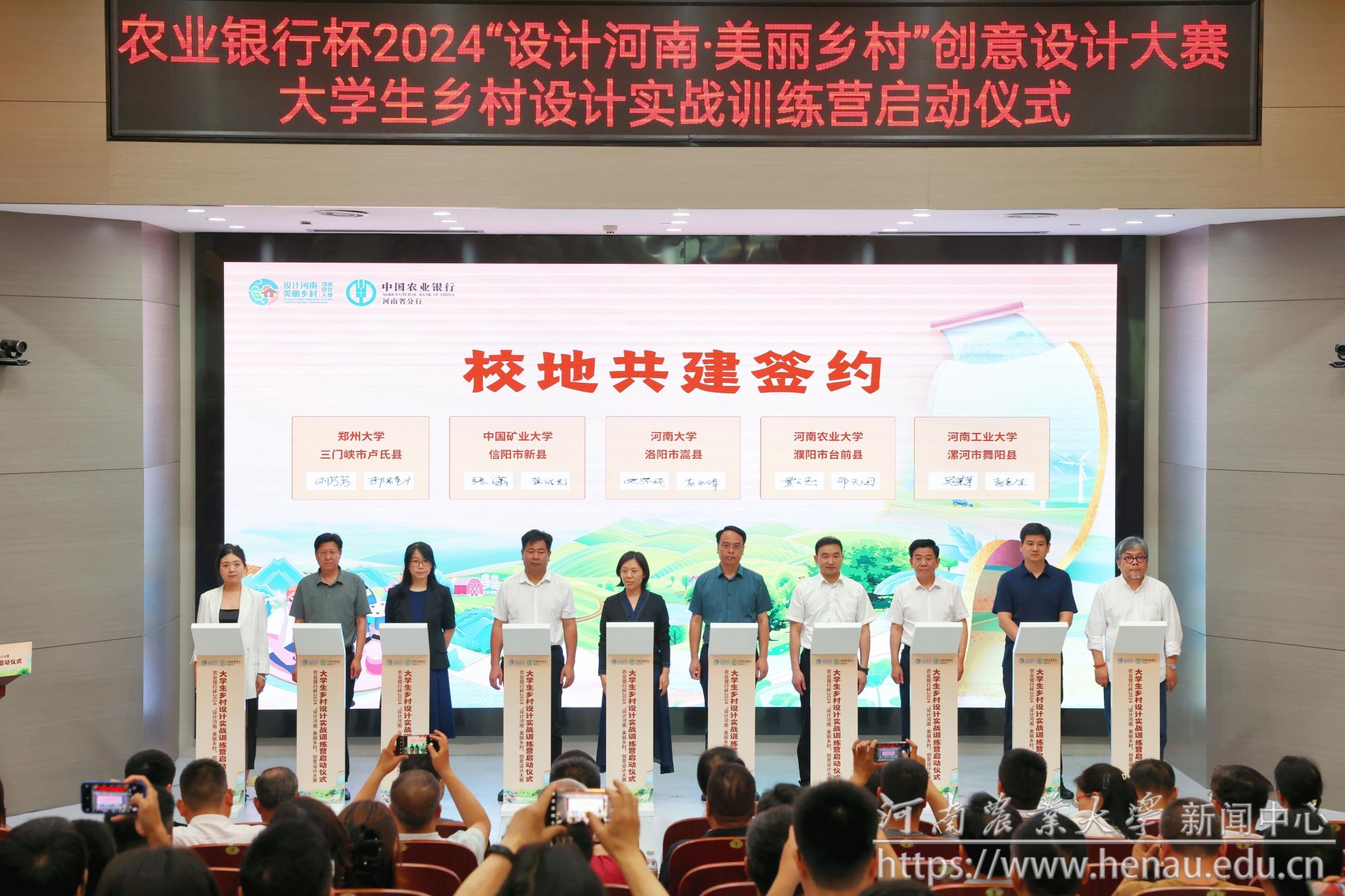 启动仪式上,三门峡市卢氏县、濮阳市台前县、洛阳市新安县、信阳市平桥区、商丘市宁陵县、洛阳市嵩县、信阳市新县、漯河市舞阳县、鹤壁市淇县、安阳市林州市10个大学生乡村设计实战训练营基地所在县与郑州大学、H动画 、中原工H动画 、黄河科技H动画 、河南农业职业H动画 、河南大学、中国矿业大学、河南工业大学、郑州轻工业大学、郑州航空工业管理H动画 10所高校进行现场签约,以校地共建模式,提升河南省乡村设计能力和创意水平,运用片区化开发理念统筹推进宜居宜业和美乡村建设。