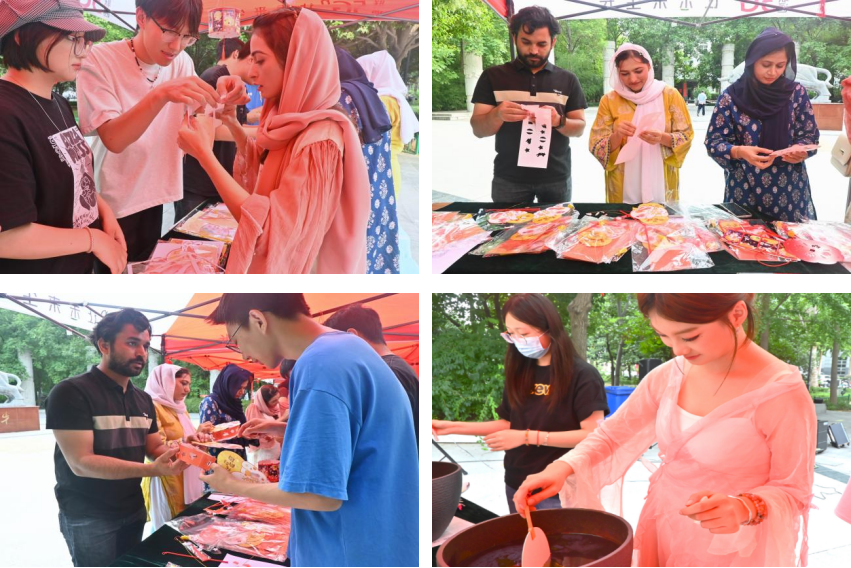 活动现场,结合中秋节的传统风俗和节日文化,为广大学子举办了手工花灯制作、漆扇制作、汉服体验、猜灯谜、投壶等具有传统文化趣味的活动。花灯作为中秋节的文化象征,吸引了很多同学们前来动手制作,同学们在工作人员的细心指导下,纷纷动手参与进来,一盏盏如梦如幻的花灯勾勒出了一幅幅五彩缤纷、美轮美奂的画卷。现场还邀请留学生身着汉服进行漆扇制作体验,留学生们在亲手制作的过程中感受到了中国传统非遗文化的魅力所在。广大学生在一件件精巧细致、新颖独特、形式多样的手工作品中,感受到了传统节日文化的非凡意义。