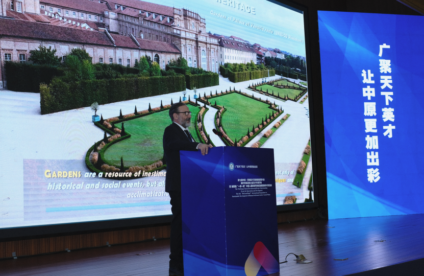 副院长、都灵农业协会主席马可•德维基在报告中介绍了皮埃蒙特的历史花园和联合国教科文组织景观。