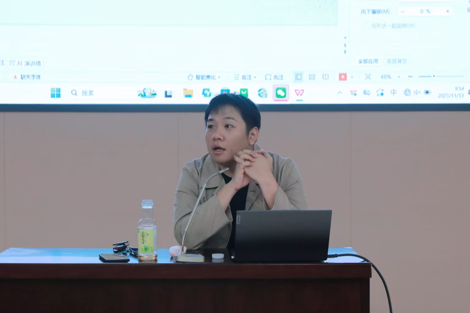 会议伊始,李雨澍从就业途径和准备方法入手,并从劳动合同制度、人事代理制度、就业准入制度等方面说明了就业入职注意事项。王岩从强调了英语对后期求职的重要性,从四个方面深入介绍了雅思考试。孙国栋从未来路径、国际视野、就业困境、行业结构等多方面进行讲解引导,并重点分析了考研和留学两条路径规划。互动环节,同学们就宣讲内容踊跃提出问题,老师结合自身经历进行了生动细致的解答,现场气氛热烈。