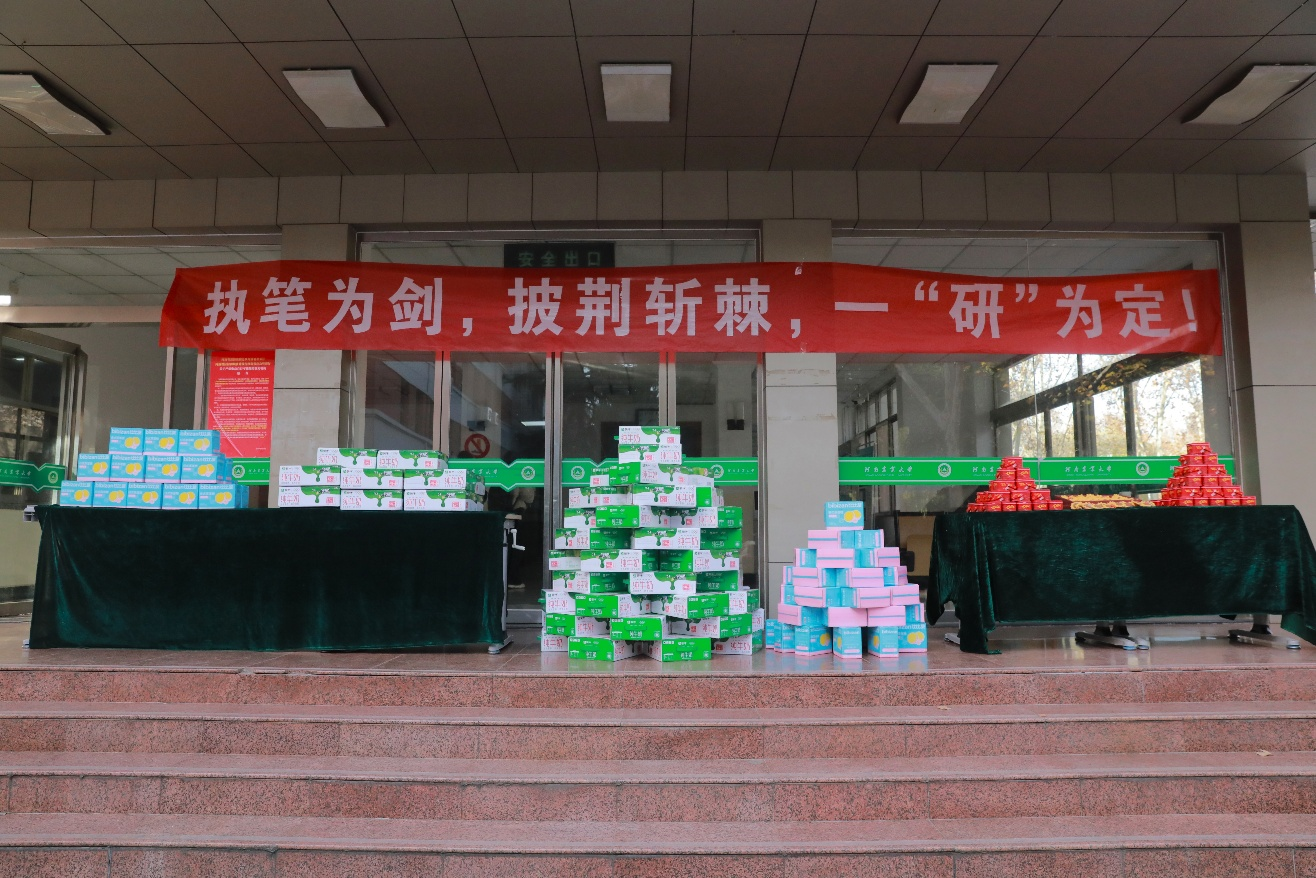 在文化路校区13号楼开展“执笔为剑,披荆斩棘,一‘研’为定”考研送温暖活动。H动画