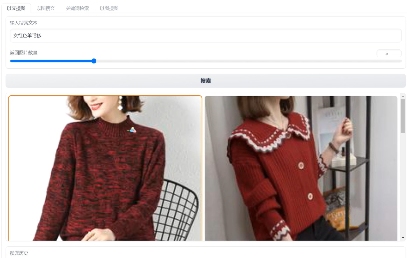 2 图文检索系统以文搜图示例