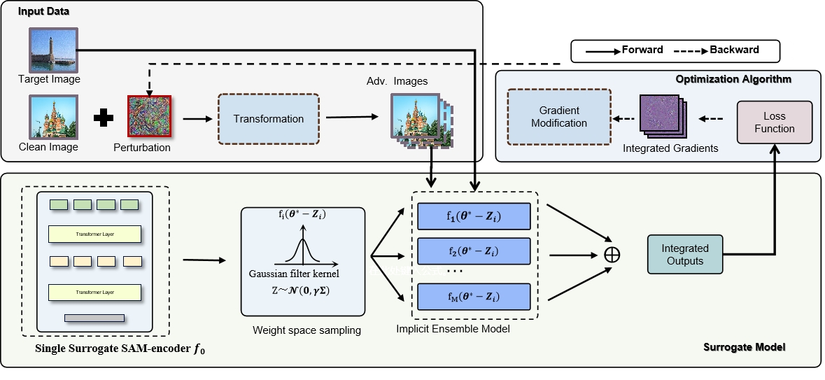 (2)高迁移算法,生成多个隐式模型进行集成攻击,如图4所示。