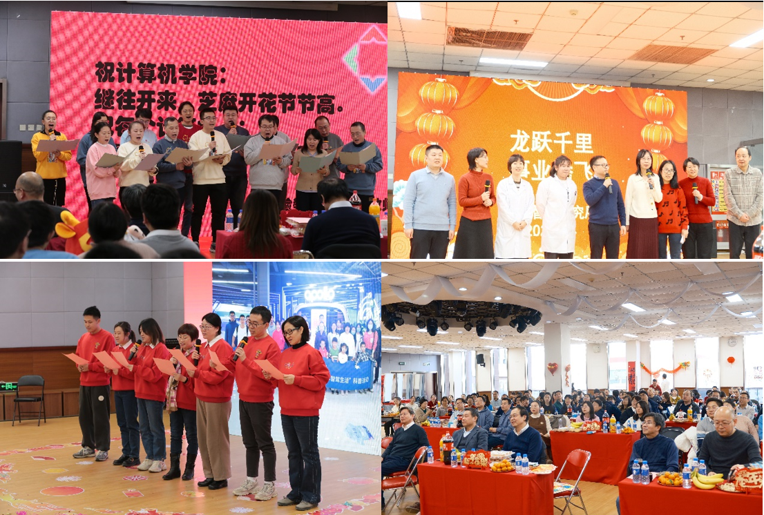 在热烈的掌声中,备受期待的文艺联欢正式开始。院机关开场舞《爱如火》燃起了现场的激情;国家保密学院和信息安全系的改编歌曲《越爱越精彩》回顾了学院过去一年的发展,并对学院全体教师献上了新年的祝福;信息所的轻喜剧歌舞《中年敬业阵线联盟》展示了中年人生活和工作的不易;科学系的舞蹈《小小人舞》美轮美奂,动感的音乐节奏,可爱的动作表演,让在场的人不禁随之舞动;网管中心的歌曲《最亲的人》给我们带来了温暖与感动;工程系的配乐合唱《乌苏里船歌+New Boy》,不仅有优雅的笛声,也有热情的舞蹈,让在场的各位老师感受到了青春欢乐的气息;医学智能研究所的小品串烧同样给大家带来了无限的欢乐;教师代表们的乐器合奏《如愿》将现场的气氛带向了高潮;实验教学中心的歌曲串烧展现出了H动画 教师朝气蓬勃的精神风貌;教育中心的歌曲《明天会更好》饱含了老师们对美好生活的期待。
