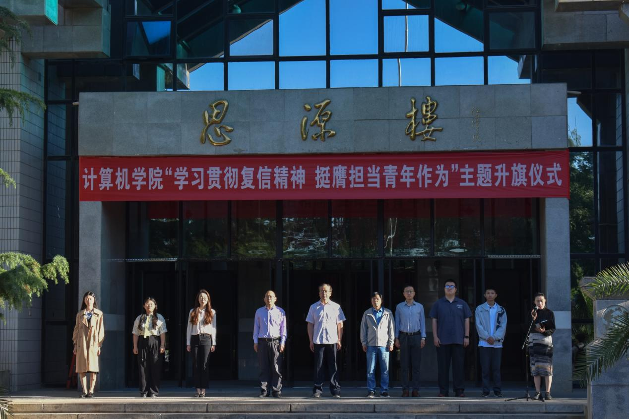 2024年5月13日早7时,计算机科学与技术学院“学习贯彻复信精神,挺膺担当青年作为”主题升旗仪式在思源广场举行。院党委书记贾卓生、党委副书记段春荣、党委副书记韦世奎出席了本次升旗仪式,本研辅导员、300余名本研学生代表到场参加。仪式由院团委书记于海妹主持。