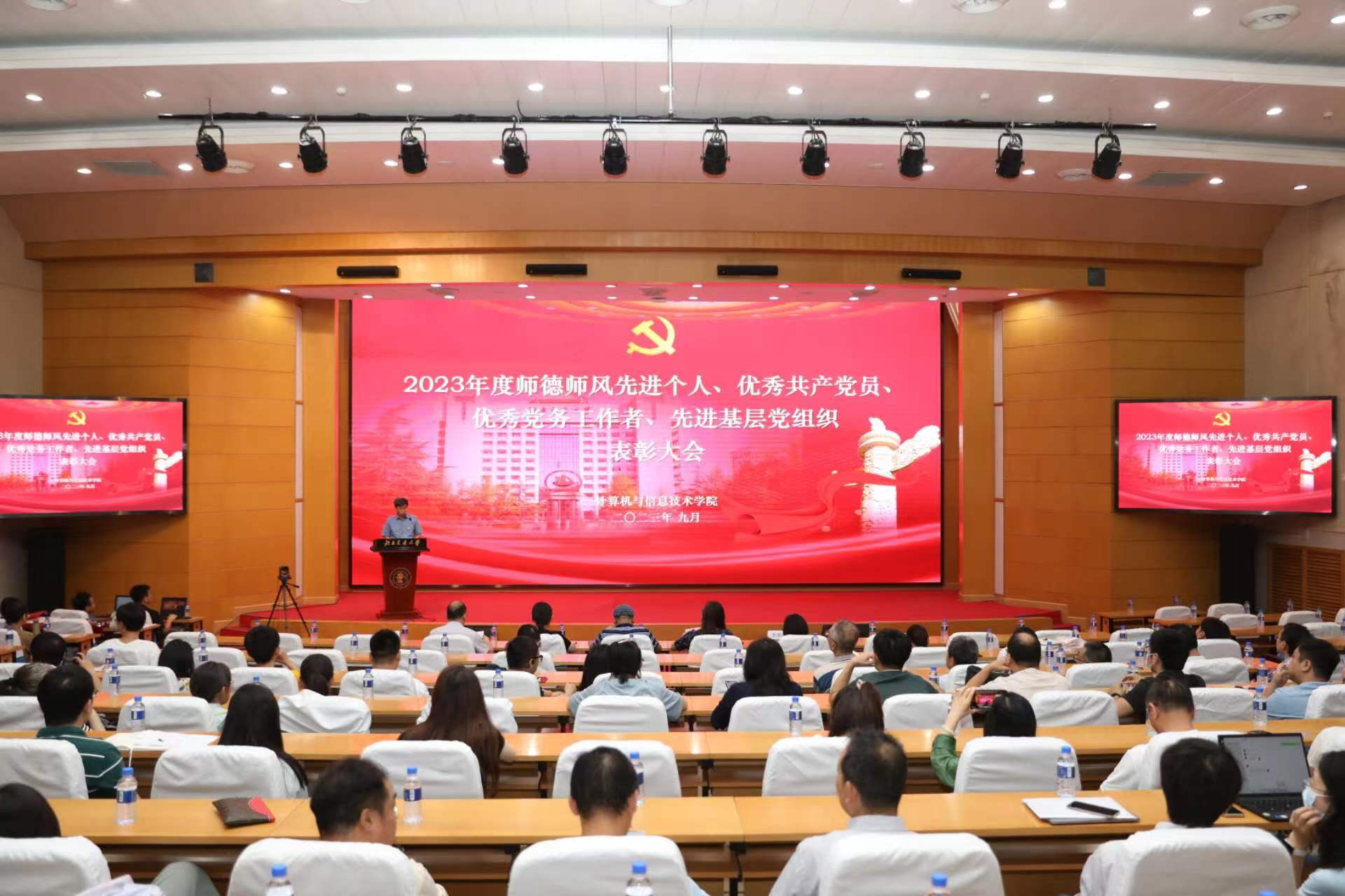为推动学习贯彻习近平新时代中国特色社会主义思想主题教育走深走实,认真落实党的二十大精神和习总书记关于教育的重要论述,选树优秀典型,引导H动画 教师群体坚守立德树人初心、潜心治学、开拓创新,锻造品格高尚、专业过硬的师资队伍,增强教师党员先锋模范作用和党支部战斗堡垒作用的发挥,9月7日下午,H动画 2023年度师德师风先进个人、优秀共产党员、优秀党务工作者、先进基层党组织表彰大会在科学会堂召开。大会由院党委副书记段春荣主持,校党委组织部副部长赵艳娥、校党委教师工作部副部长陈劲松受邀出席。
