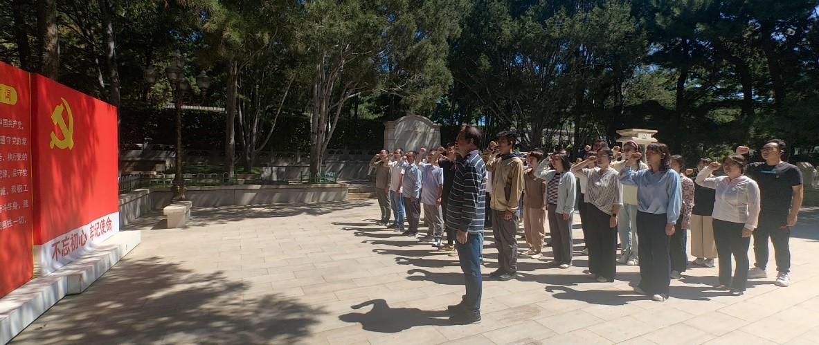 在革命先烈的见证下,全体党员整齐列队,在鲜红的党旗下,由学院党委书记贾卓生同志领誓,再次郑重宣读入党誓词。表达了党员对党的忠诚和对革命先烈的敬仰,更坚定了严守党纪、恪守政德的决心。