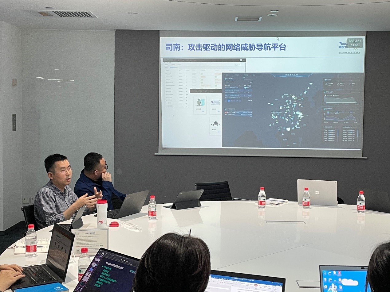 双方在大数据安全分析 “DataCon” 竞赛中发现契合点,表示未来将就相关竞赛进行设计参与等合作工作。两方将继续细化落实会议涉及合作内容,并在下一步针对大数据安全分析竞赛合作进行深化落实工作。