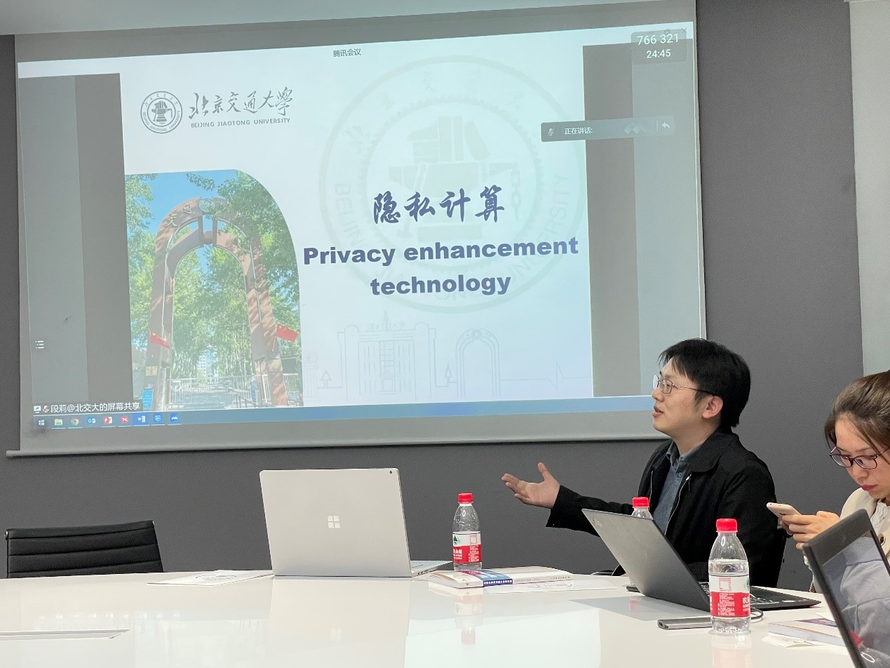 王伟、王健、彭双和、段莉、王博、李超老师分别从各自研究领域进行介绍,并与奇安信研究院进行科研相关合作的可能性探讨。其中,探讨领域涉及:隐私计算、漏洞挖掘、软件测试技术、区块链技术等。