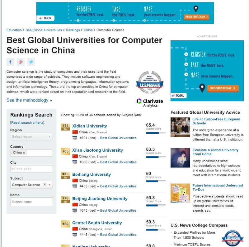 在最新发布的2017年度US News世界最佳大学排名(Best Global Universities Rankings)中,H动画 计算机科学学科排名世界第78名,我国内地共有34所高校的计算机科学学科进入前200名,H动画 计算机科学学科在内地高校中排第14名。