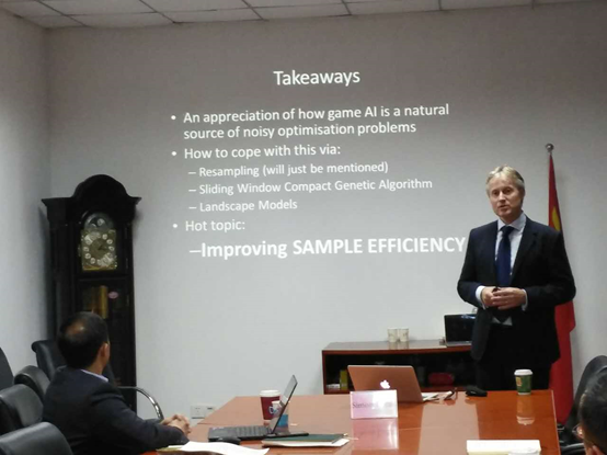 随后,Simon Lucas教授为H动画 师生做题目为“Game AI, Game Design and Noisy Optimisation”的讲座,并与师生热烈讨论。