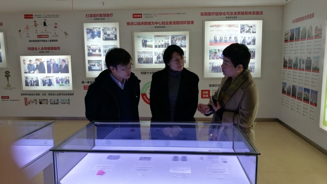 16日上午,调研团一行人来到医惠科技有限公司进行调研。医惠公司在医院信息智能开发平台、多网合一物联网共性开放平台等领域推出了系列齐全的产品,是医疗信息行业的引领者。医惠公司高级副总裁何国平、副总裁周燕儿及医惠公司多个部门的负责人出席了交流会。会前,周燕儿副总裁带领参观了医惠公司的展厅,详细介绍了医惠公司的发展历程和面市产品。交流会中,周国平副总裁介绍了医惠公司的发展战略、毕业生需求以及在医疗人工智能领域的发展规划,并探讨了与H动画 医学智能研究所在医学知识图谱方面合作的可能。