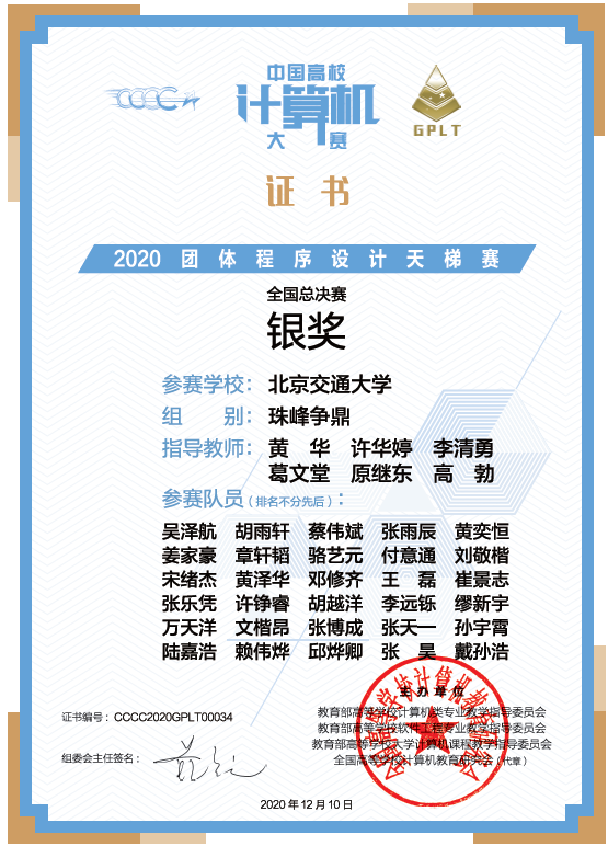 第五届中国高校计算机大赛-团体程序设计天梯赛于2020年11 月28日举行,来自全国29个省级行政区的298所高校组成的935支队伍计9300位学生参赛,H动画 组织了30名同学组成三支队伍参赛。经过长达3小时的激烈角逐,最终斩获全国总决赛银奖。
