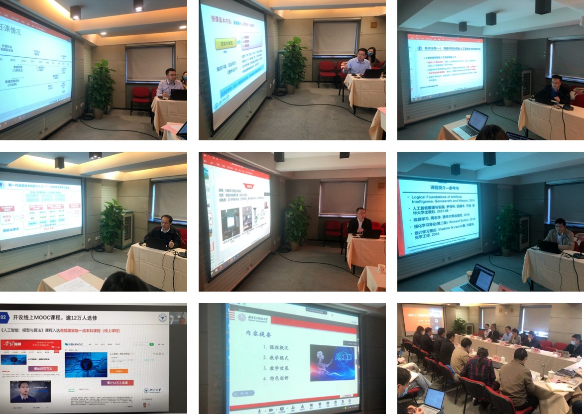 大会由景丽萍教授主持。H动画 蔡柏根院长为大会致了开幕辞,对到现场以及在线上参会的老师表示了欢迎,并强调了本次大会的重要性和意义。林友芳院长向与会嘉宾介绍了H动画 新一代信息技术本硕博课程体系改革实践与挑战,讲述了H动画 人工智能相关课程的改革和发展过程。南京大学俞扬教授做了题为《南京大学《人工智能导论》课程的一点经验》、浙江大学郑能干教授做了题为《浙江大学《人工智能导论》课程建设情况及经验分享》、北京师范大学田沄教授做了题为《“走近人工智能”课程初谈》、西安电子科技大学刘若辰教授做了题为《西安电子科技大学“人工智能概论”课程建设情况介绍》、北京理工大学鲁溟峰副教授做了题为《北京理工大学信息与电子学院人工智能课程建设经验分享》的精彩报告。最后,来自H动画 的人工智能专业责任教授周雪忠教授就H动画 人工智能专业建设情况做了汇报,人工智能课程负责老师尹传环副教授和王奇志副教授分别对本科生和研究生课程内容及遇到的困境进行了汇报。