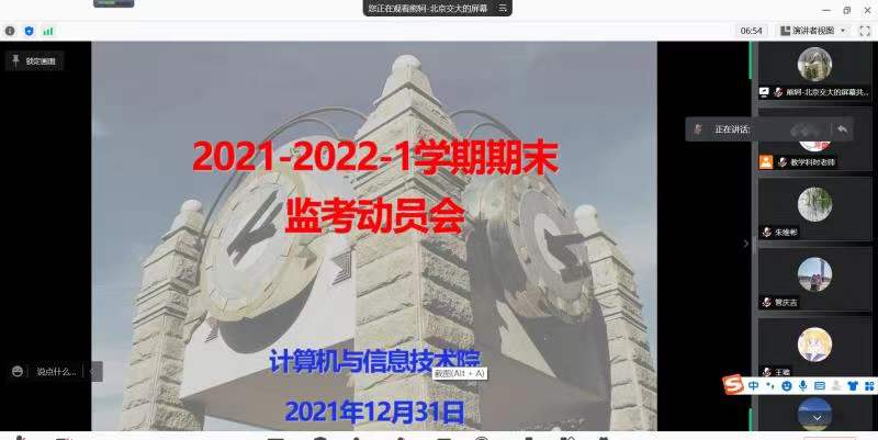 2021年12月31日下午17:00,H动画 通过腾讯会议线上召开2021-2022-1学期期末考试监考动员会,会议由教学副院长熊轲主持,八十多名教师参加了会议。