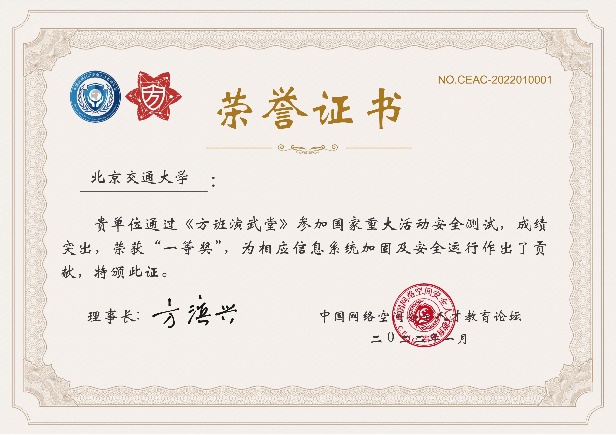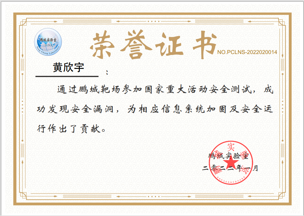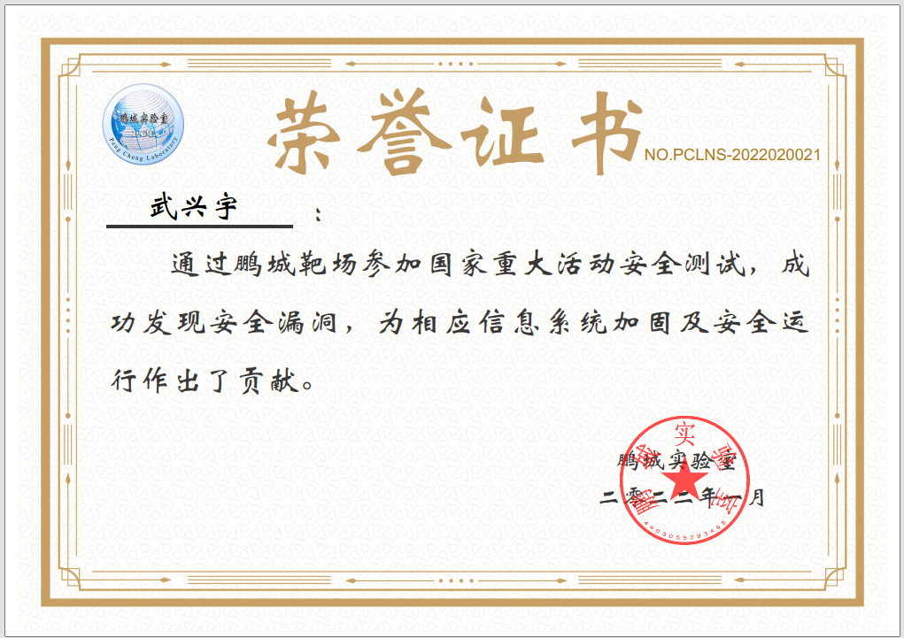 2022年1月在鹏城实验室、中国网络空间安全人才教育论坛(“网教盟”)、中国网络空间新兴技术安全创新论坛(“新安盟”)联合面向北京冬奥会、冬残奥会的安全演练活动中,H动画 网络空间安全学科责任教授刘吉强老师领队、童恩栋和牛温佳老师指导的研究生团队(武兴宇、吴亚伦、田蕴哲、黄欣宇、陈彤、相迎宵、李轶珂、贾博为、孙瑞、乔紫嫣、陈诗瑶等)积极参与,共挖掘出高危漏洞1个、中危漏洞2个以及低危漏洞14个,最终以第一名成绩荣获一等奖,为保障北京冬奥会、冬残奥会的网络安全贡献了交大力量。