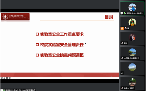 贾卓生书记传达了学校安全工作的部署,进一步强调学院安全的重要性,落实学校加强实验室安全专项行动,做好迎接教育部2022年高校实验室安全检查准备工作,围绕学院重点区域用电安全,安全应急演练和安全教育,安全隐患排查等方面进行部署,要求各系所要统筹做好疫情防控和实验室安全管理,时刻不能松懈,要积极落实各项规章制度,深入开展安全教育,排查安全隐患,针对发现的问题及时进行整改,保障学院教学科研等各项工作的顺利进行。