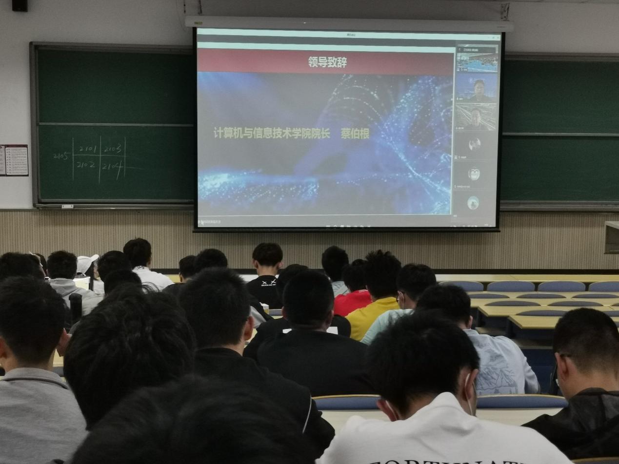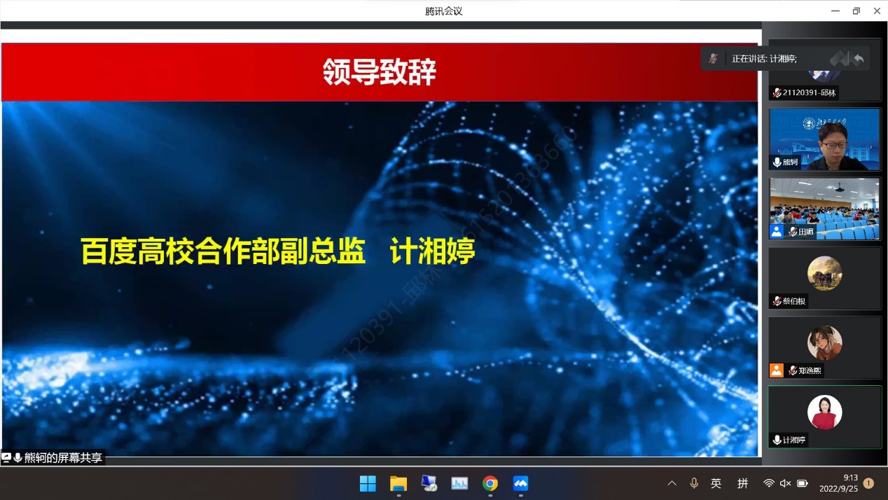 按照疫情防控要求,本次启动会采用了“线上+线下”相结合的方式,在校学生在九教中102教室与百度公司的领导和班主任通过腾讯视频会议开展了一场别开生面的云交流。