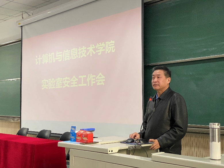 蔡伯根院长在总结发言中要求全体员工提高政治站位,强化安全红线意识,深刻认识实验室安全工作的重要性,杜绝侥幸麻痹思想,切实提升实验室安全工作水平,保障学院教学科研等各项工作的顺利进行。