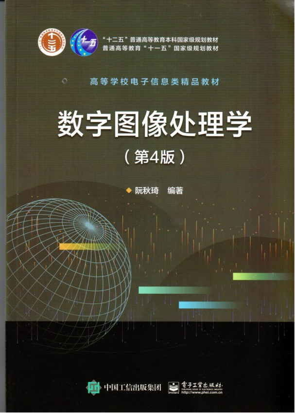 阮秋琦教授编著了《数字图像处理学》、翻译了美国Rafael C.Gonzalez 和Richard E.Woods编著的《数字图像处理》两本教材,并在电子工业出版社出版。其中《数字图像处理学(第4版)》已于2022年5月出版,字数1008千字,被评为国家“十一五”“十二五”规划教材和国家级精品教材。《数字图像处理(第四版)》也已于2020年5月出版。这两本教材出版后得到许多一线教师的好评和同行专家的认可,在各大高校得到广泛使用。
