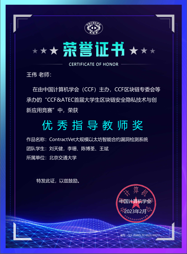 信息安全系组队在CCF & ATEC 大学生区块链安全竞赛中喜获佳绩!