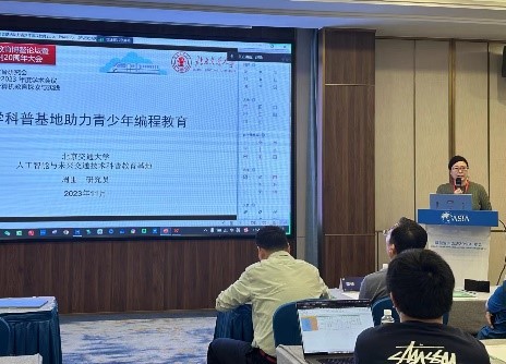 大会同时举行多项专题论坛活动,在青少年计算机教育探索与实践专题论坛中,H动画 周围老师做《大学科普基地助力青少年编程教育》报告,介绍了H动画 “人工智能与未来交通技术科普教育基地”的建设历程和在青少年AI教育方面的探索实践,引起了参会代表对科普基地的广泛关注。