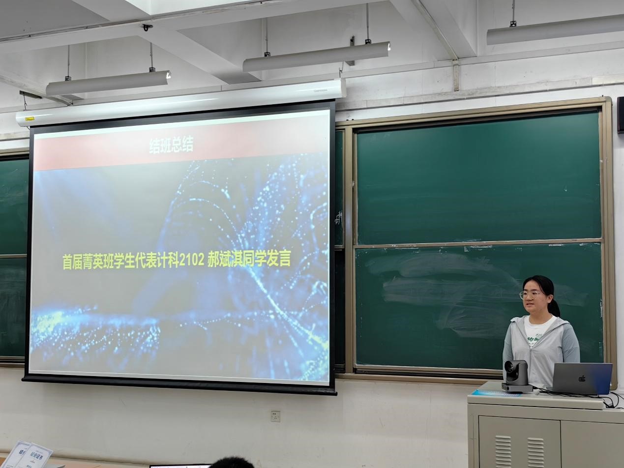 熊轲为第一届松果菁英班学生代表王彩怡、郝斌淇和侯昕蕊同学颁发了优秀结业证书。菁英班班长郝斌淇同学代表第一届全体松果菁英班同学发言。郝斌淇同学向到场的100多位学弟学妹介绍了她在松果菁英班的学习、比赛的情况和收获。