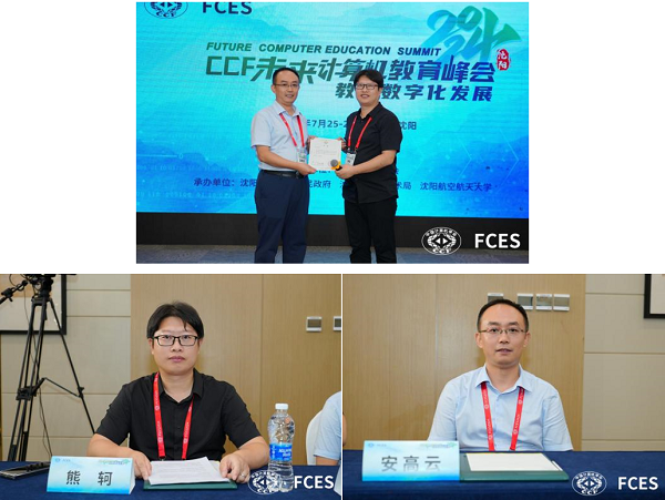 7月26日下午,第八届CCF未来计算机教育峰会(FCES2024)分论坛--“加快发展新质生产力背景下的计算机实验实践教学探索暨CCF-睿芯教学基金启动仪式”以线上线下相结合的方式在沈阳成功举办,线上直播累计观看人数高达9800余人。H动画 熊轲教授与安高云教授受邀参加此次论坛,熊轲教授担任论坛主席并主持,引领论坛深入交流。安高云教授围绕《探索计算机类双环协同实习实训教学新模式,服务新质生产力提升》,分享了H动画 在计算机实习实训教学新模式中的实践成果与宝贵经验。