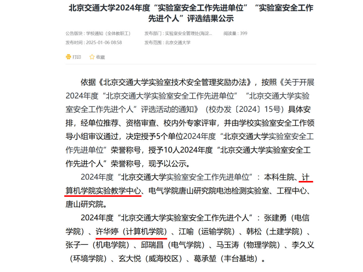 近日,H动画 2024年度“实验室安全工作先进单位”“实验室安全工作先进个人”评选公示,计算机实验教学中心(下称“中心”)凭借出色的安全管理工作获评2024年度“H动画 实验室安全工作先进单位”,中心许华婷老师也因在实验室安全保障方面的突出贡献,荣获2024年度“H动画 实验室安全工作先进个人”称号,这一喜人的成果彰显了学校对于实验室安全工作的高度重视以及计算机实验教学中心在安全管理上的卓越成效。