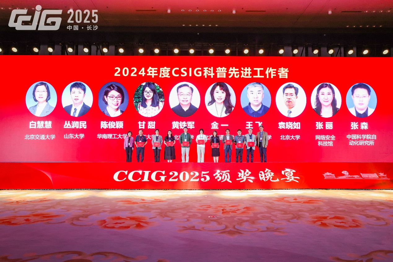 中国图象图形学学会(CSIG)科普先进工作者和先进单位:该奖项经中国图象图形学学会设立,旨在弘扬科学精神,普及科学知识,进一步加强图像图形应用知识等宣传推广,充分调动广大研究工作者参加科普工作的积极性,扩大图像图形科普活动的社会影响力。该奖项分为先进个人及先进单位。先进个人旨在激励热爱图像图形科普事业,在科普教育实践中发挥作用明显、成绩显著的科技工作者。先进单位旨在奖励在在科普管理、宣传推广、创作产出、活动组织等方面作出突出贡献的学会分支机构、科普教育基地、会员单位。