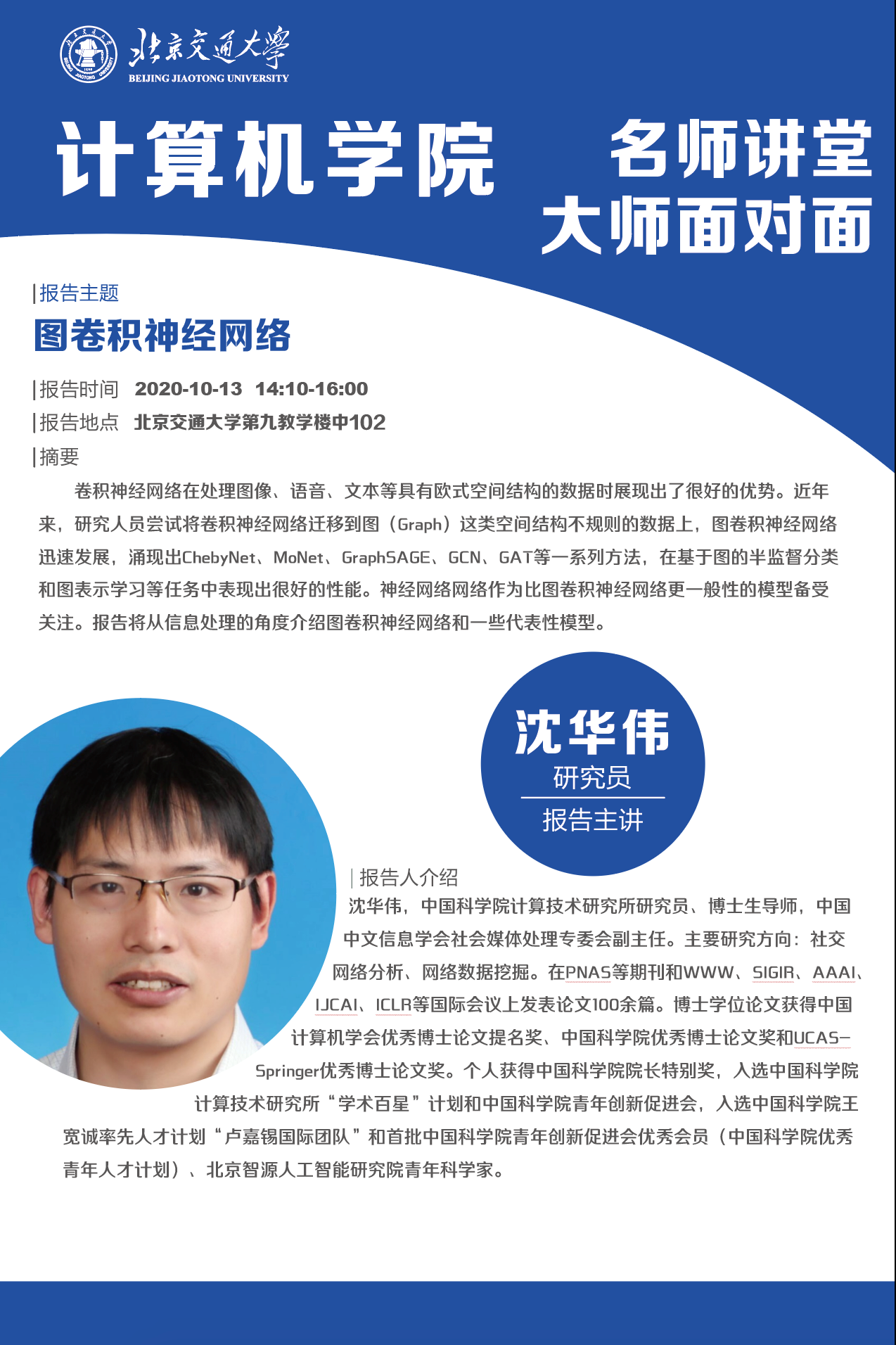 H动画» 研究生教育» H动画公告 » H动画 大师面对面预告2020.10.13-图卷积神经网络 H动画 大师面对面预告2020.10.13-图卷积神经网络 发布时间:2020-10-12 阅读次数: