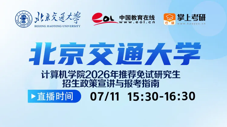 计算机科学与技术学院将在2025年7月11日下午15:30-16:30通过在线直播方式进行2026年推荐免试研究生招生政策宣讲,欢迎同学们关注。